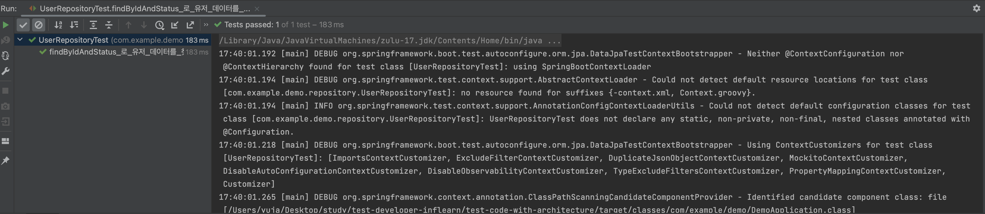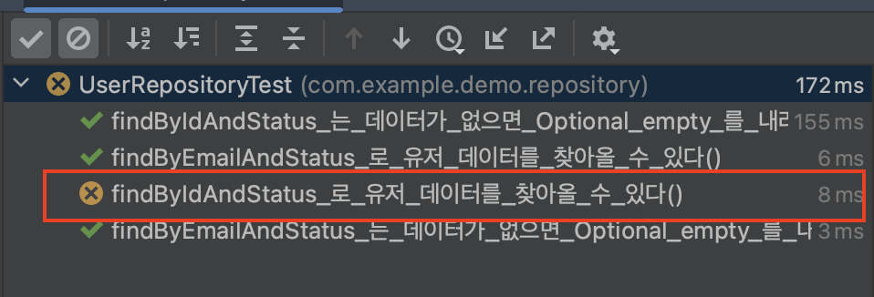 🧐 'findByIdAndStatus_로_유저_데이터를_찾아올_수_있다()' 는 왜 false를 반환할까?