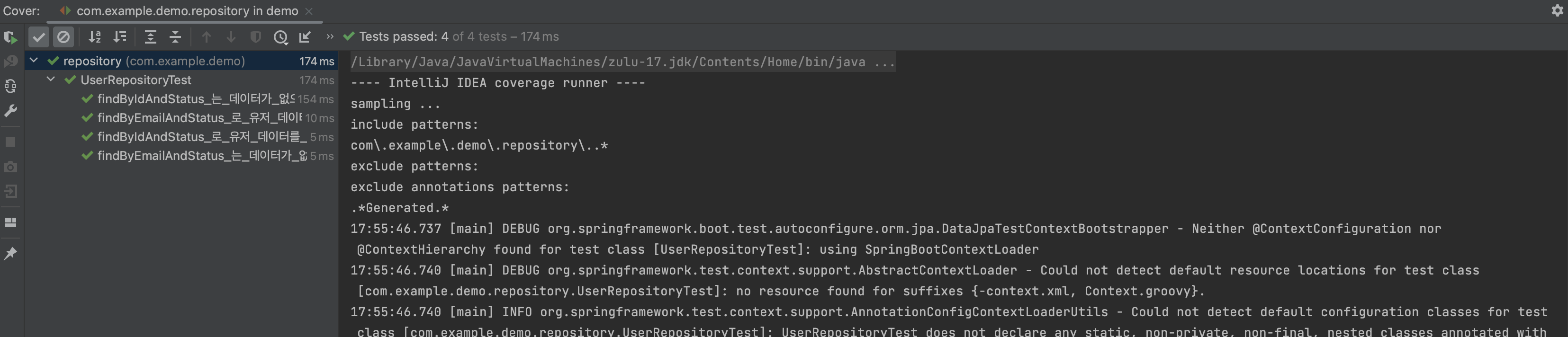 위 UserRepository를 테스트하는 코드를 짜보겠다.