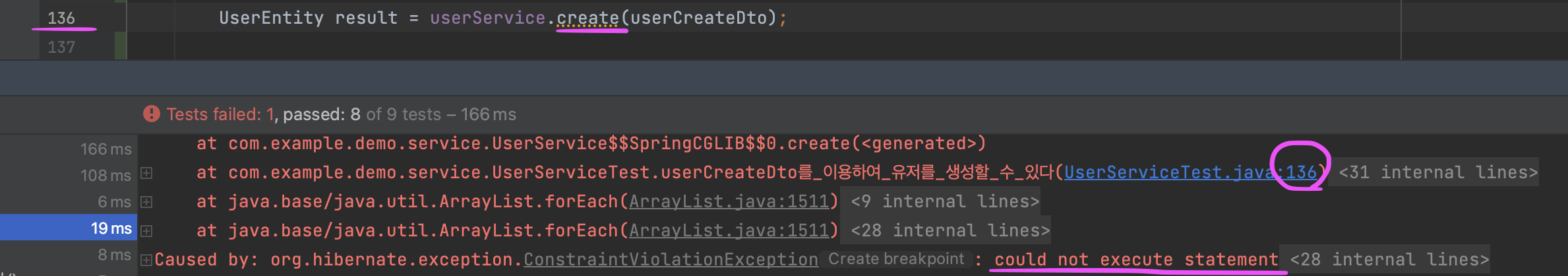 2. 테스트 함수 내에서 생성한 UserEntity객체를 DB에 save()하는 과정에서 발생한 예외이다. 즉, sql 파일의 쿼리 실행 실패와는 관련 없다.